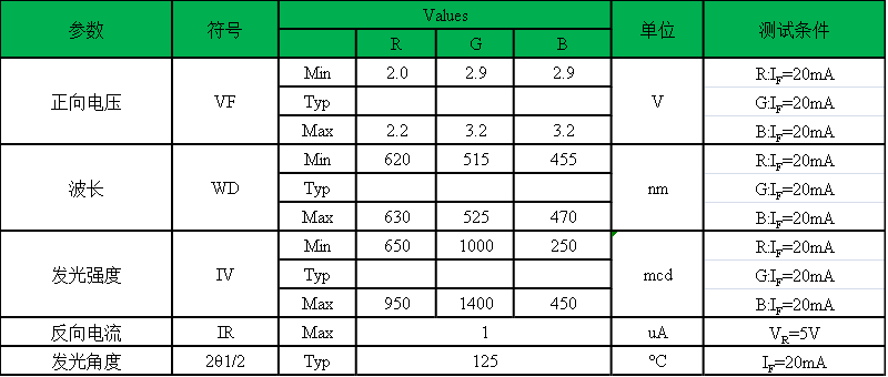 發(fā)出顏色:紅色、綠色和藍(lán)色